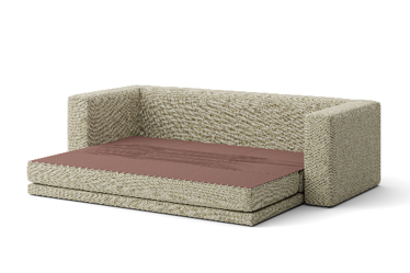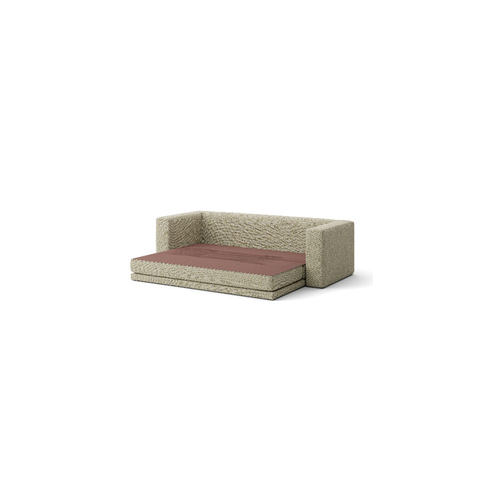 Structure en bois massif et panneaux, Assise en mousse haute résilience aux propriétés performantes pour une longue durée de vie Caractéristiques Modèle à la fois esthétique et fonctionnel grâce à son système à tiroir qui permet d'offrir un grand couchage double, Housse déhoussable avec fermeture éclair