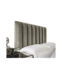 Tête de lit avec une partie tapissée faite d’un panneau en bois sur lequel viennent se fixer des bandes en mousse en forme de demi-cercle. Pré-revêtement en tissu couplé avec la fibre de polyester Bois massif , contreplaqué et panneau de particule Tissu : Cuir synthétique/Toile texturé / Velours