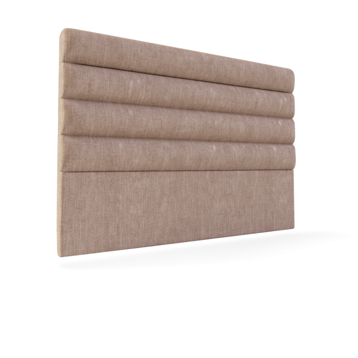 Tête de lit avec un cadre en panneau, avec des bandes en mousse en forme de demi-cercle. Pré-revêtement en tissu couplé avec la fibre de polyester